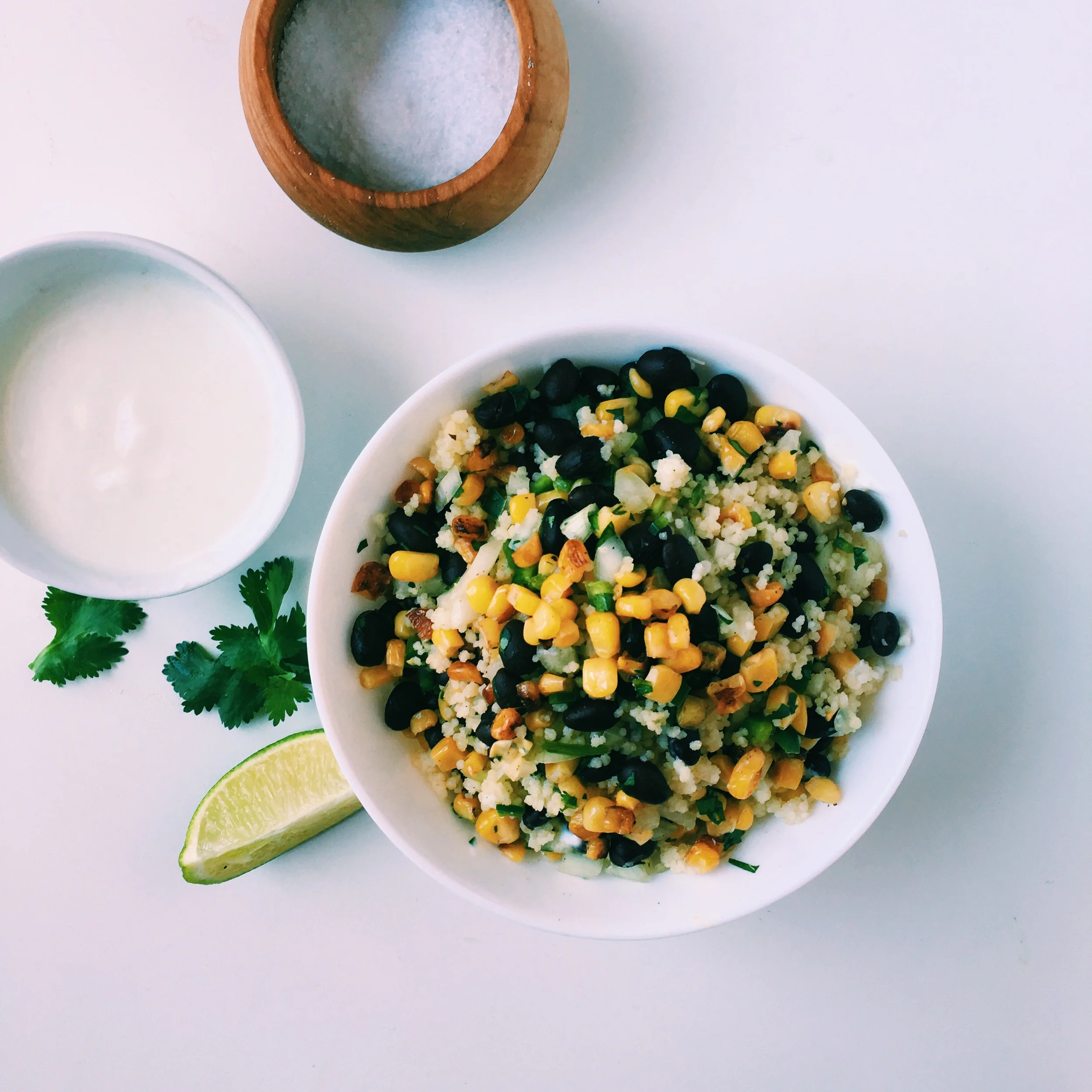 Here I decided to make a Mexican inspired grilled corn and black bean salad. I made some guacamole a few days earlier and still had some cilantro, jalpenos I wanted to utilize. I also added some white onions and lime juice that I almost always have in house. In the bowl I made a non fat plain yogurt sauce to drizzle over my salad.